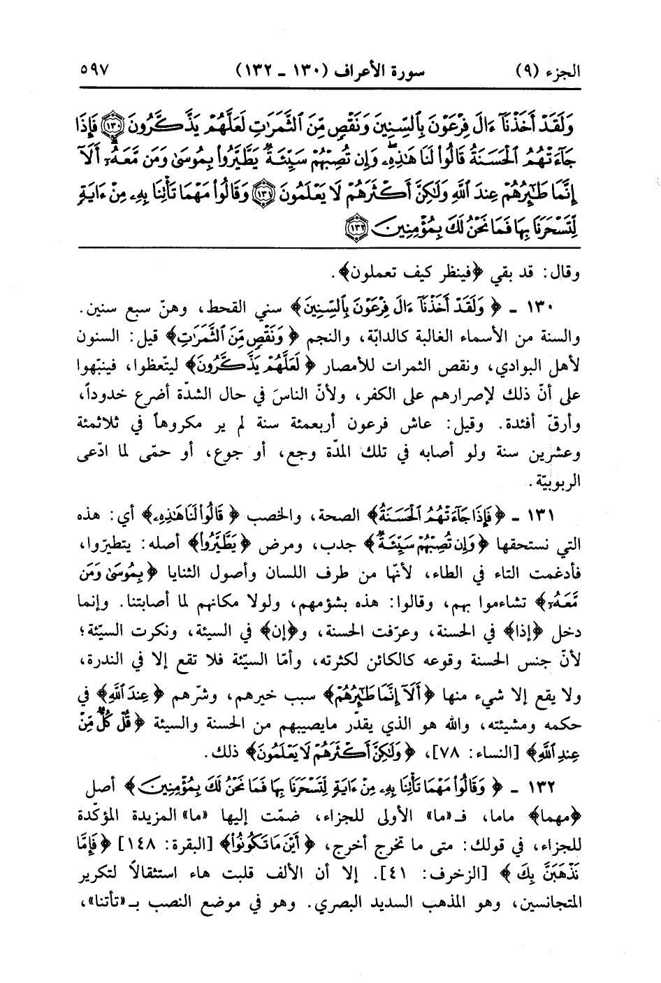 فَإِذَا جَاءَتْهُمُ الْحَسَنَةُ قَالُوا لَنَا هَذِهِ وَإِنْ تُصِبْهُمْ سَيِّئَةٌ يَطَّيَّرُوا بِمُوسَى وَمَنْ مَعَهُ أَلَا إِنَّمَا طَائِرُهُمْ عِنْدَ اللَّهِ وَلَكِنَّ أَكْثَرَهُمْ لَا يَعْلَمُونَ (131)