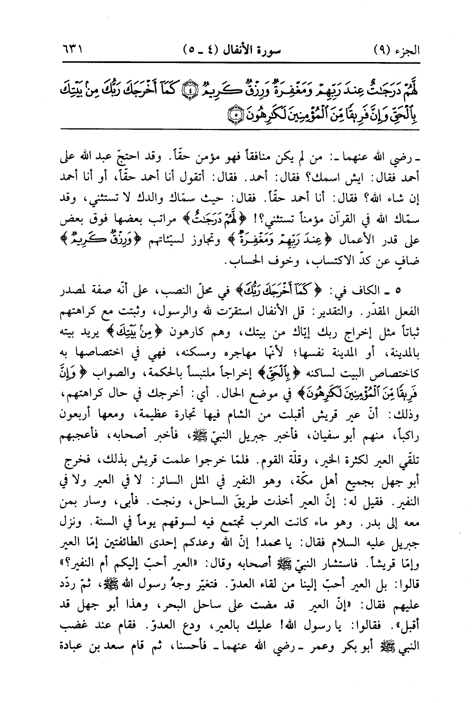 كَمَا أَخْرَجَكَ رَبُّكَ مِنْ بَيْتِكَ بِالْحَقِّ وَإِنَّ فَرِيقًا مِنَ الْمُؤْمِنِينَ لَكَارِهُونَ (5)