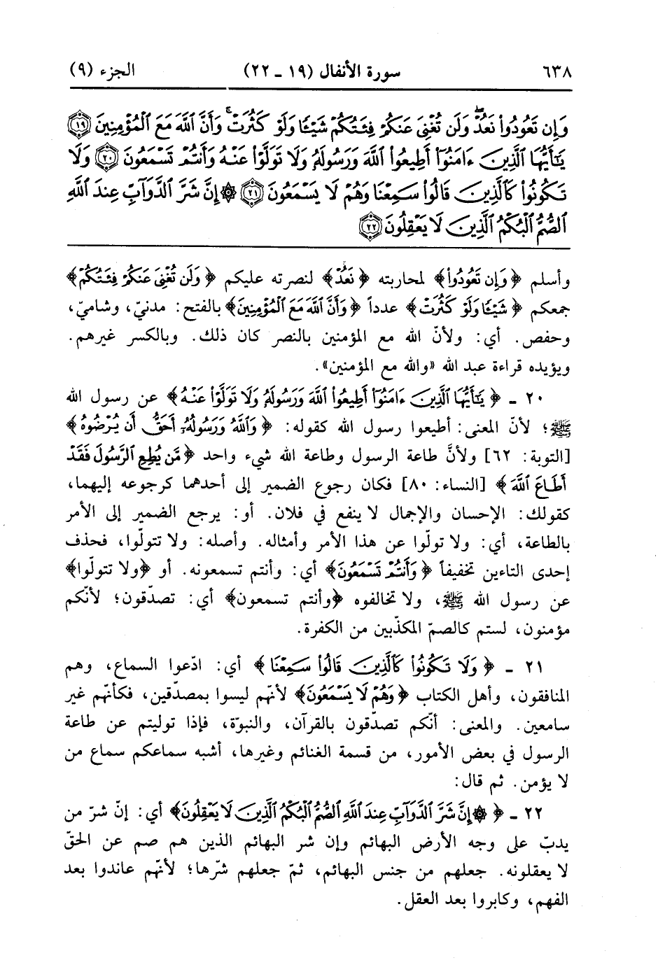 يَا أَيُّهَا الَّذِينَ آمَنُوا أَطِيعُوا اللَّهَ وَرَسُولَهُ وَلَا تَوَلَّوْا عَنْهُ وَأَنْتُمْ تَسْمَعُونَ (20)