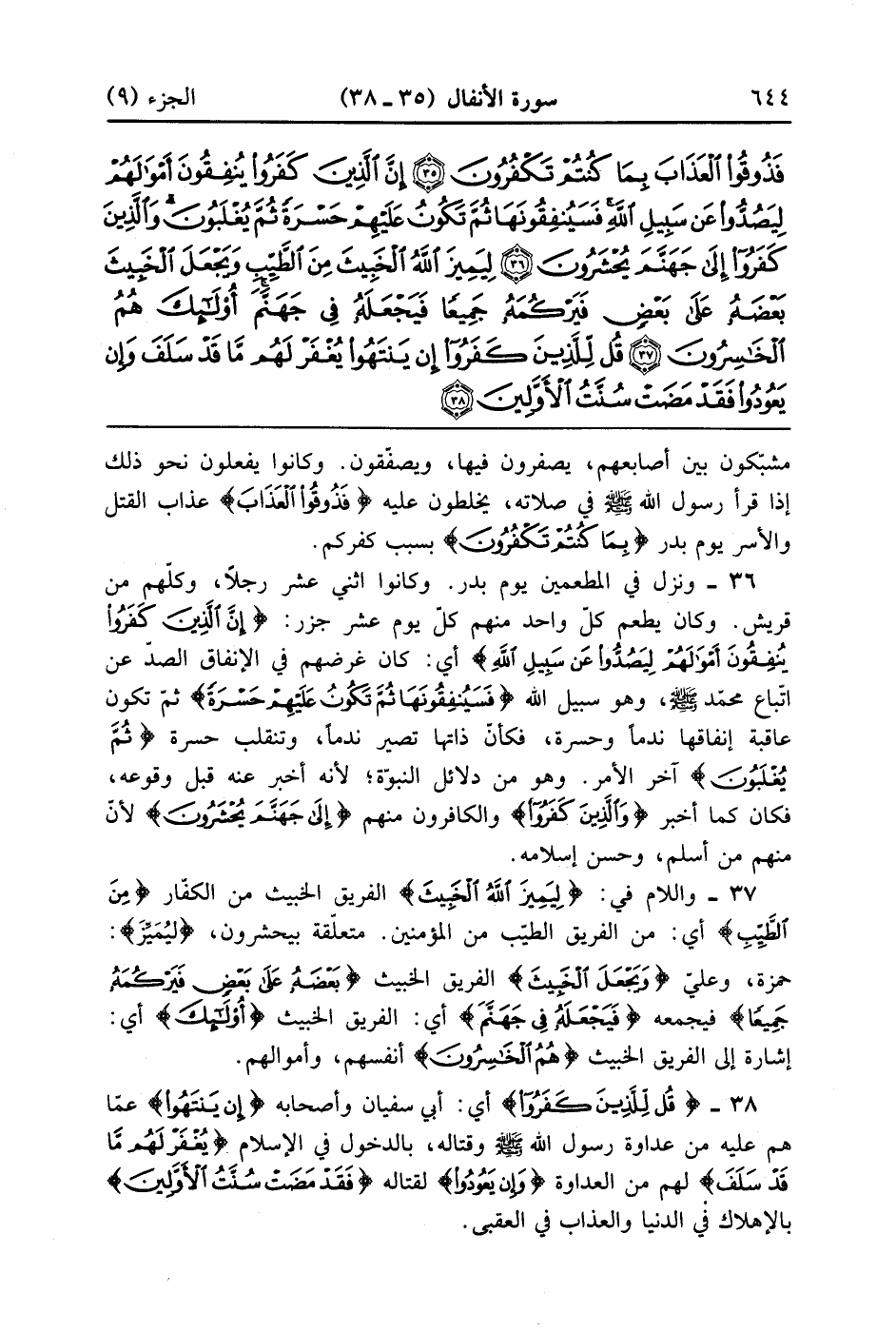 الأنفال 35 39 {بعضه على بعض فيركمه جميعا} فيحمعه {فَيَجْعَلَهُ فِى جَهَنَّمَ} أي الفريق الخبيث {أولئك} إشارة إلى الفريق الخبيث {هم الخاسرون} أنفسعهم واموالهم