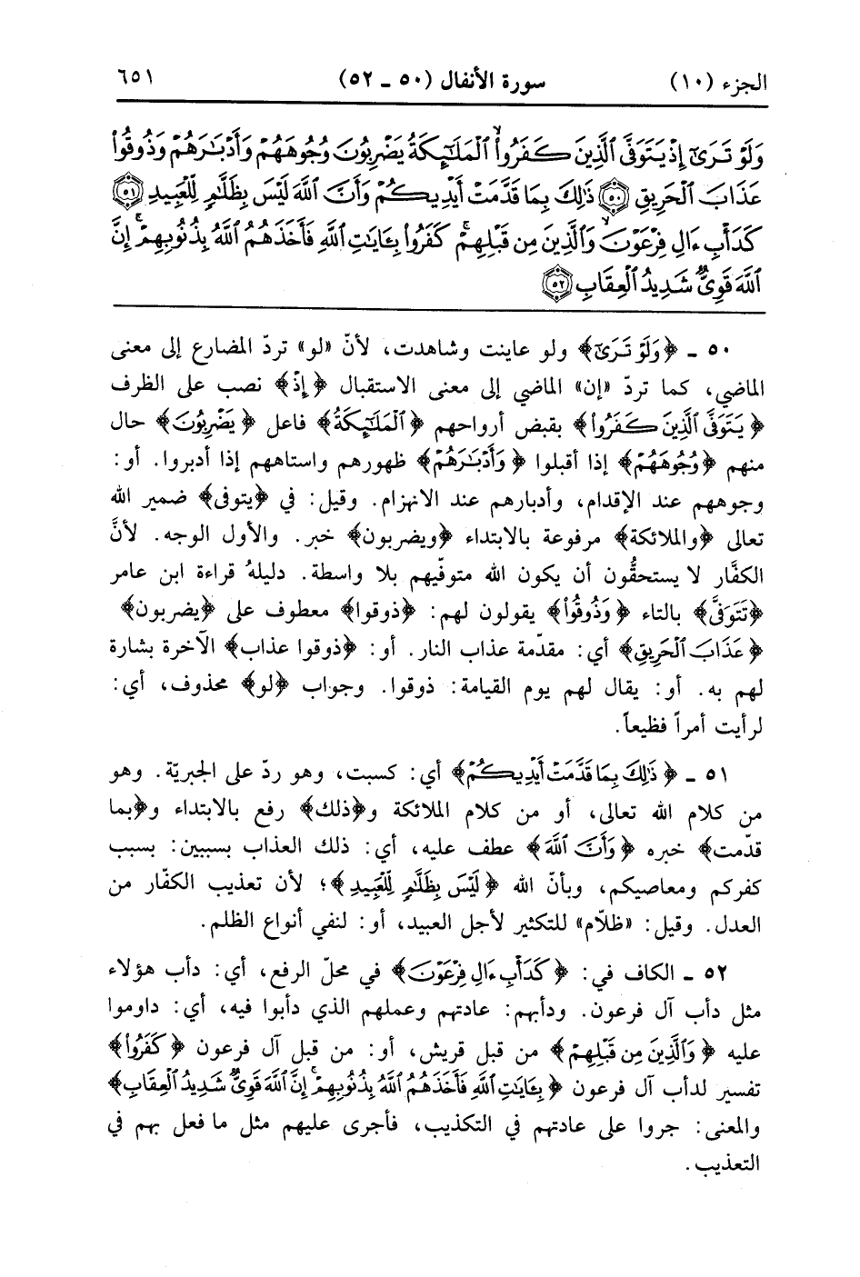 وَلَوْ تَرَى إِذْ يَتَوَفَّى الَّذِينَ كَفَرُوا الْمَلَائِكَةُ يَضْرِبُونَ وُجُوهَهُمْ وَأَدْبَارَهُمْ وَذُوقُوا عَذَابَ الْحَرِيقِ (50)