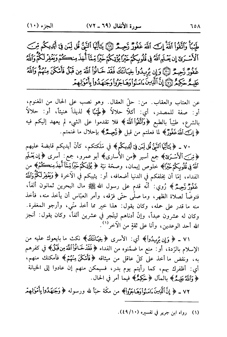 يَا أَيُّهَا النَّبِيُّ قُلْ لِمَنْ فِي أَيْدِيكُمْ مِنَ الْأَسْرَى إِنْ يَعْلَمِ اللَّهُ فِي قُلُوبِكُمْ خَيْرًا يُؤْتِكُمْ خَيْرًا مِمَّا أُخِذَ مِنْكُمْ وَيَغْفِرْ لَكُمْ وَاللَّهُ غَفُورٌ رَحِيمٌ (70)