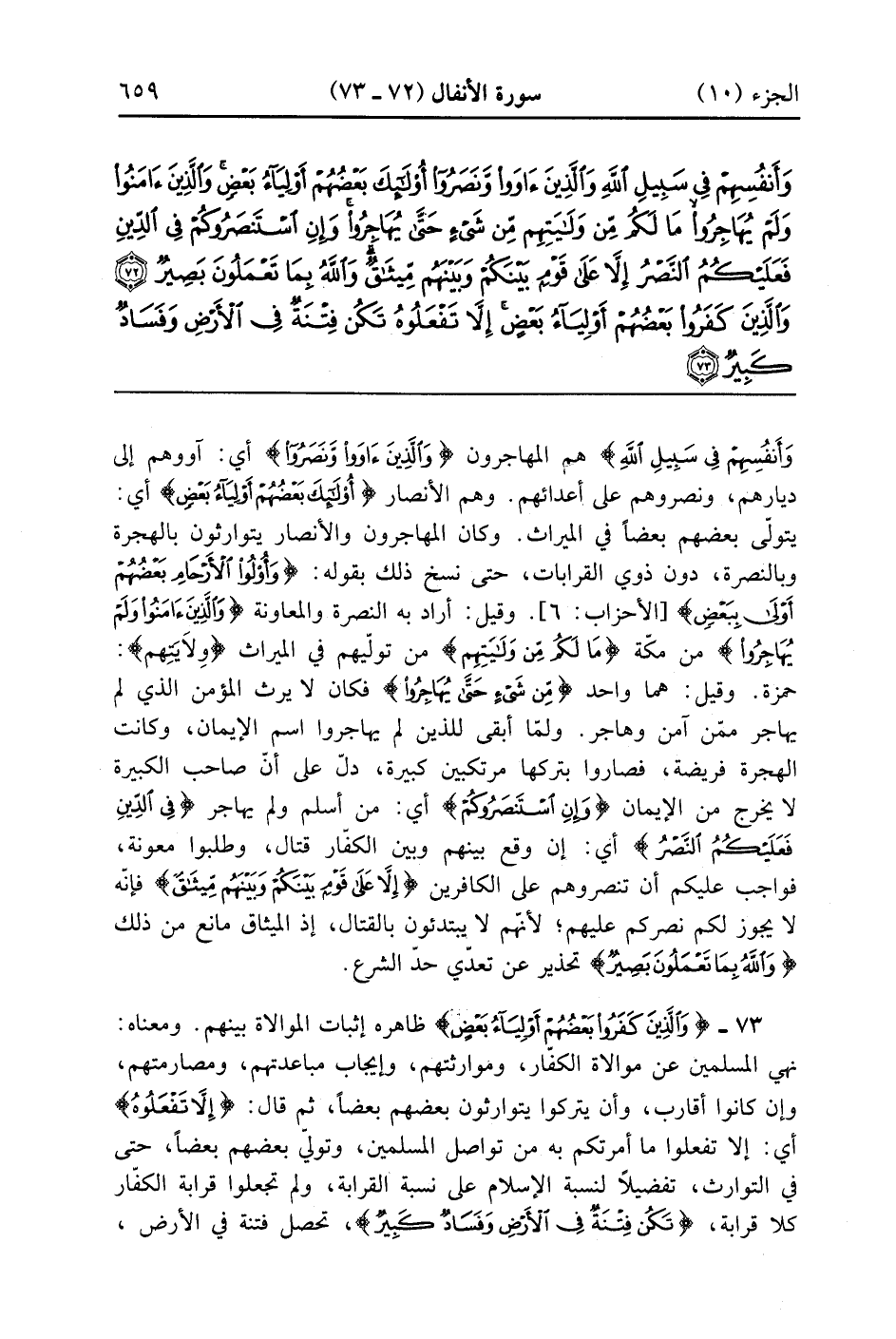 وَالَّذِينَ كَفَرُوا بَعْضُهُمْ أَوْلِيَاءُ بَعْضٍ إِلَّا تَفْعَلُوهُ تَكُنْ فِتْنَةٌ فِي الْأَرْضِ وَفَسَادٌ كَبِيرٌ (73)