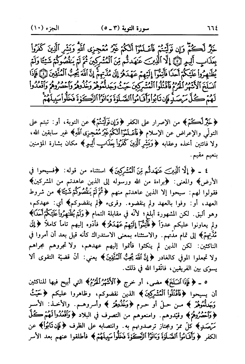 إِلَّا الَّذِينَ عَاهَدْتُمْ مِنَ الْمُشْرِكِينَ ثُمَّ لَمْ يَنْقُصُوكُمْ شَيْئًا وَلَمْ يُظَاهِرُوا عَلَيْكُمْ أَحَدًا فَأَتِمُّوا إِلَيْهِمْ عَهْدَهُمْ إِلَى مُدَّتِهِمْ إِنَّ اللَّهَ يُحِبُّ الْمُتَّقِينَ (4)