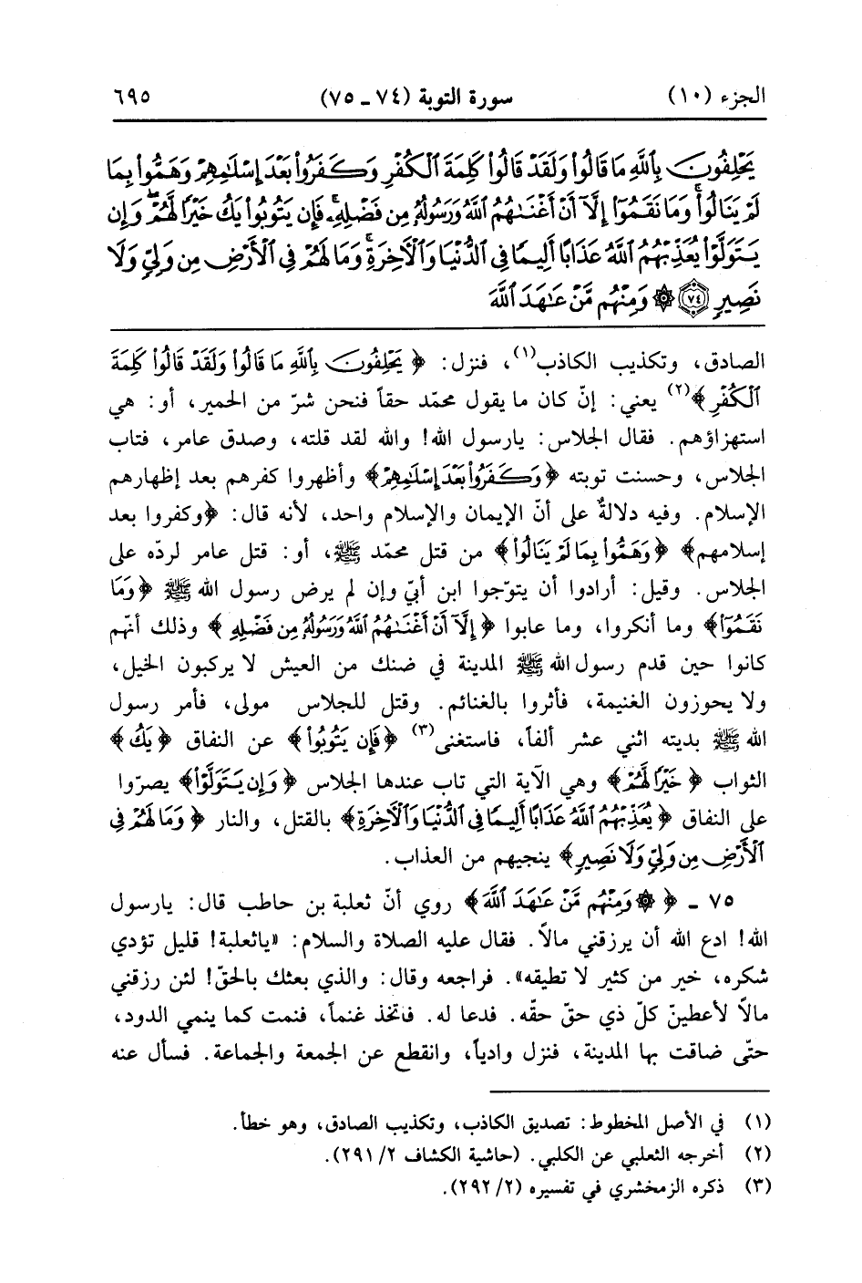وَمِنْهُمْ مَنْ عَاهَدَ اللَّهَ لَئِنْ آتَانَا مِنْ فَضْلِهِ لَنَصَّدَّقَنَّ وَلَنَكُونَنَّ مِنَ الصَّالِحِينَ (75)