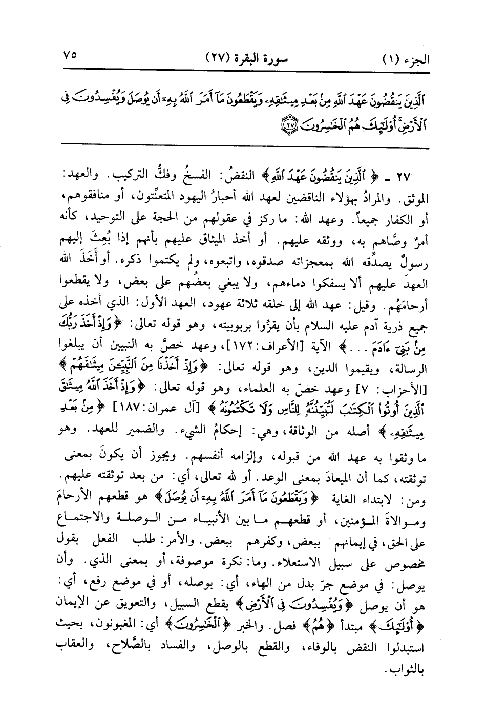 الَّذِينَ يَنْقُضُونَ عَهْدَ اللَّهِ مِنْ بَعْدِ مِيثَاقِهِ وَيَقْطَعُونَ مَا أَمَرَ اللَّهُ بِهِ أَنْ يُوصَلَ وَيُفْسِدُونَ فِي الْأَرْضِ أُولَئِكَ هُمُ الْخَاسِرُونَ (27)