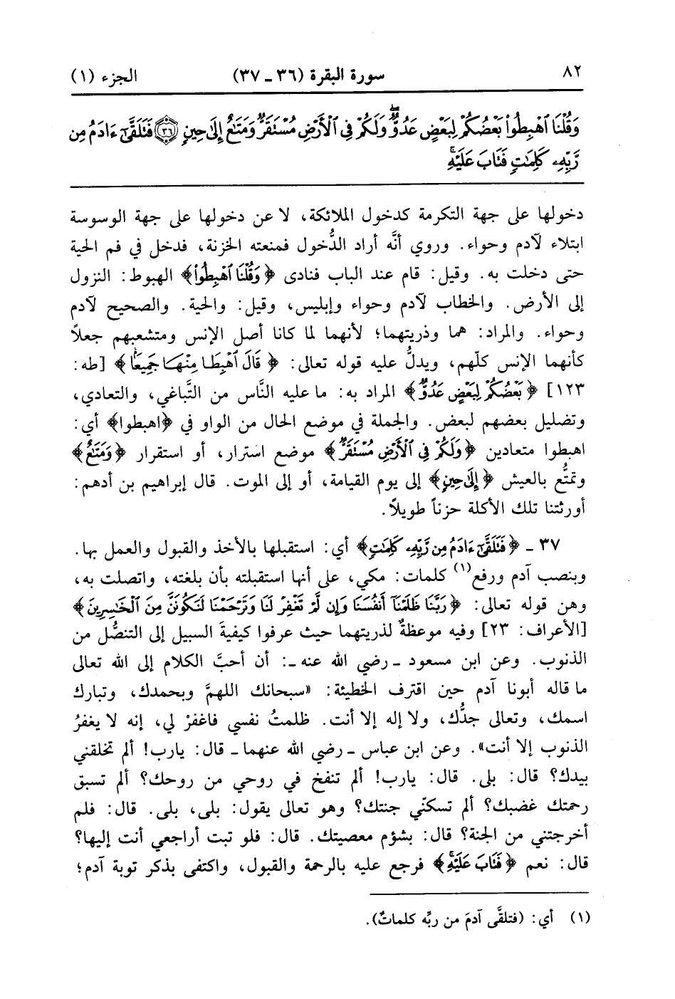 فَتَلَقَّى آدَمُ مِنْ رَبِّهِ كَلِمَاتٍ فَتَابَ عَلَيْهِ إِنَّهُ هُوَ التَّوَّابُ الرَّحِيمُ (37)
