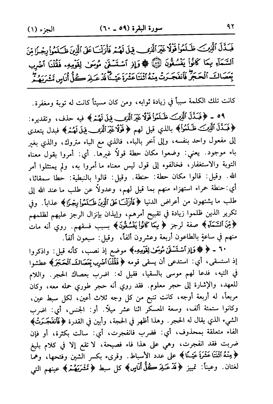 وَإِذِ اسْتَسْقَى مُوسَى لِقَوْمِهِ فَقُلْنَا اضْرِبْ بِعَصَاكَ الْحَجَرَ فَانْفَجَرَتْ مِنْهُ اثْنَتَا عَشْرَةَ عَيْنًا قَدْ عَلِمَ كُلُّ أُنَاسٍ مَشْرَبَهُمْ كُلُوا وَاشْرَبُوا مِنْ رِزْقِ اللَّهِ وَلَا تَعْثَوْا فِي الْأَرْضِ مُفْسِدِينَ (60)