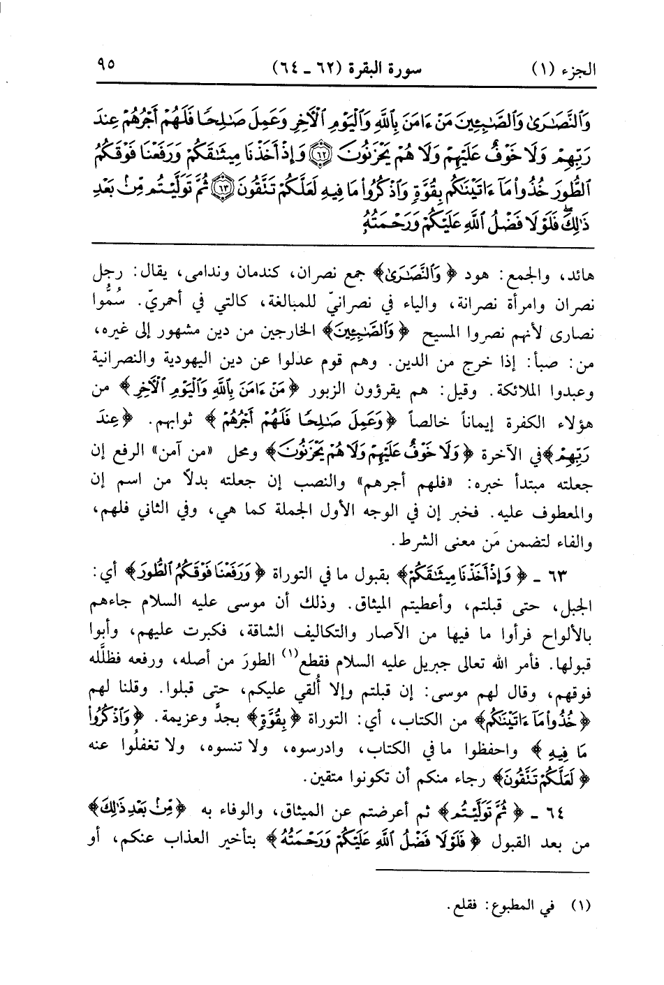 وَإِذْ أَخَذْنَا مِيثَاقَكُمْ وَرَفَعْنَا فَوْقَكُمُ الطُّورَ خُذُوا مَا آتَيْنَاكُمْ بِقُوَّةٍ وَاذْكُرُوا مَا فِيهِ لَعَلَّكُمْ تَتَّقُونَ (63)