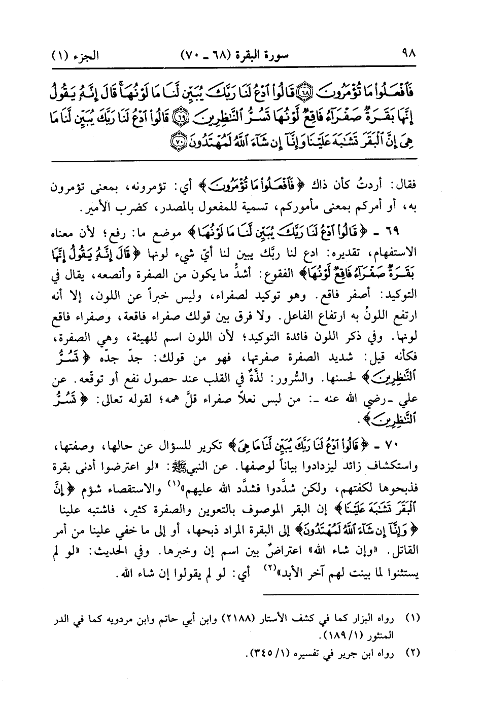 قَالُوا ادْعُ لَنَا رَبَّكَ يُبَيِّنْ لَنَا مَا هِيَ إِنَّ الْبَقَرَ تَشَابَهَ عَلَيْنَا وَإِنَّا إِنْ شَاءَ اللَّهُ لَمُهْتَدُونَ (70)