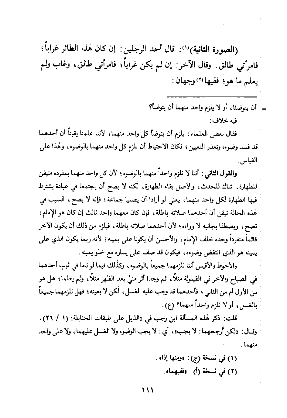 قلت: ذكر هذه المسألة ابن رجب في "الذيل على طبقات الحنابلة" (1/ 26)، وقال: "لكن أرجحهما: لا يجب"، أي: لا يجب الوضوء ولا الغسل عليهما، ولا على واحد منهما.