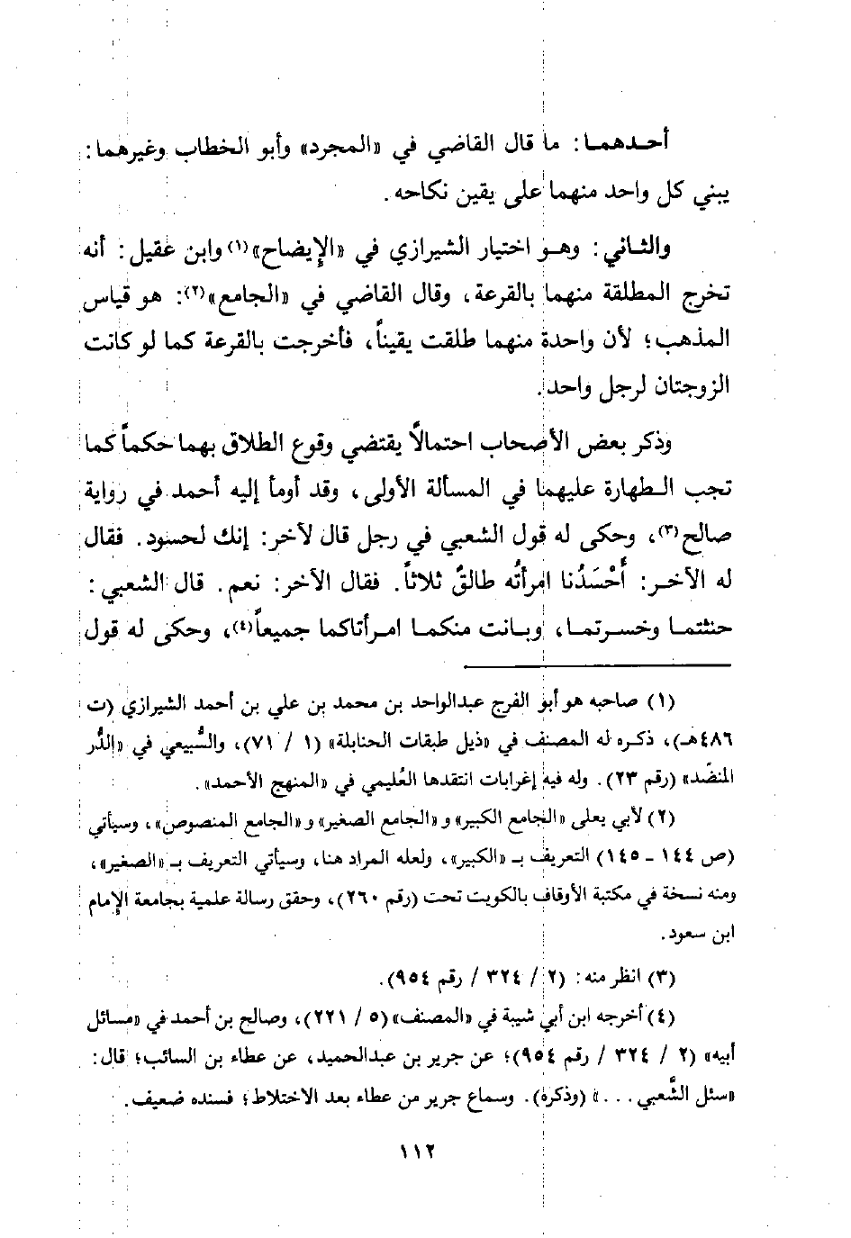 (¬1) صاحبه هو أبو الفرج عبد الواحد بن محمد بن علي بن أحمد الشيرازي (ت 486 هـ)، ذكره له المصنف في "ذيل طبقات الحنابلة" (1/ 71)، والسُّبيعي في "الدُّر المنضّد" (رقم 23). وله فيه إغرابات انتقدها العُليمي في "المنهج الأحمد".