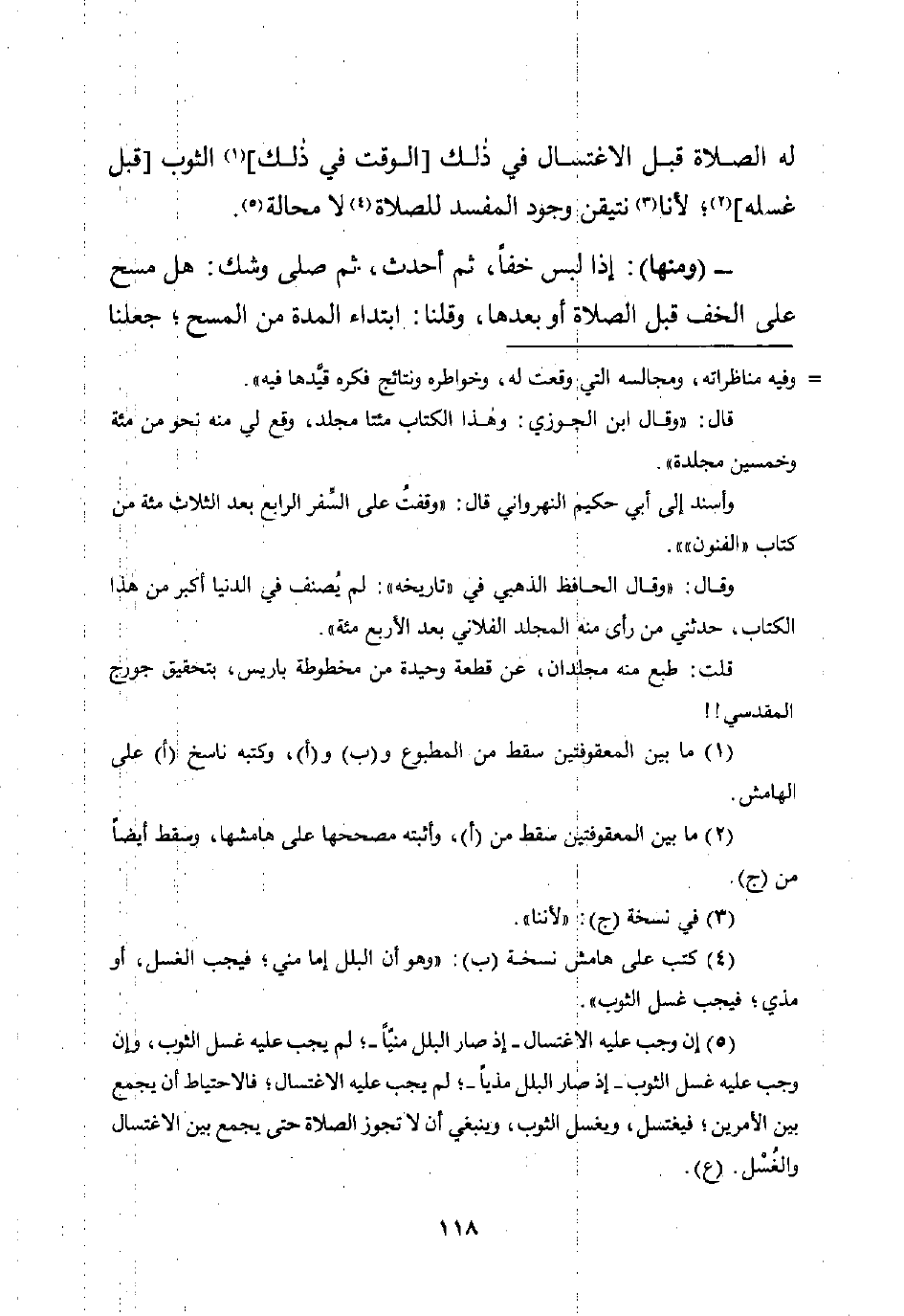 (¬5) إن وجب عليه الاغتسال -إذ صار البلل منيًّا-؛ لم يجب عليه غسل الثوب، وإن وجب عليه غسل الثوب -إذ صار البلل مذيًا-؛ لم يجب عليه الاغتسال؛ فالاحتياط أن يجمع بين الأمرين؛ فيغتسل، ويغسل الثوب، وينبغي أن لا تجوز الصلاة حتى يجمع بين الاغتسال والغُسْل. (ع).