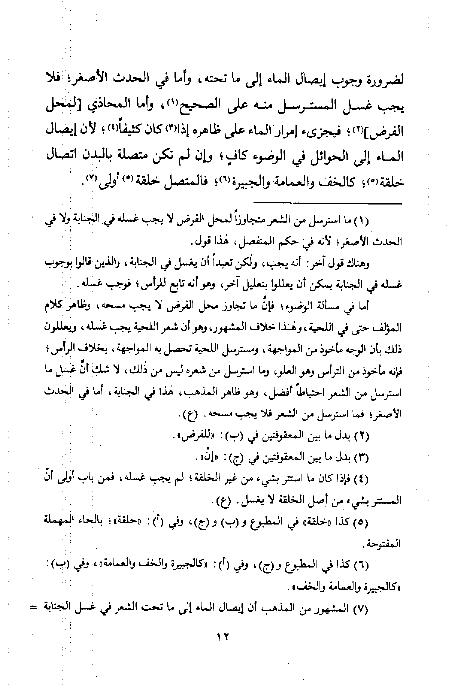 (¬7) المشهور من المذهب أن إيصال الماء إلى ما تحت الشعر في غسل الجنابة =