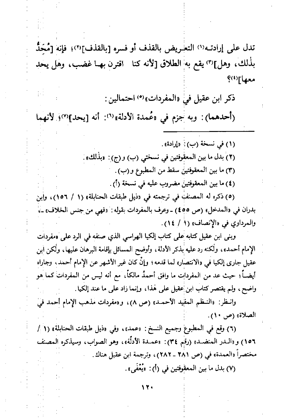 (¬6) وقع في المطبوع وجميع النسخ: "عمد" وفي "ذيل طبقات الحنابلة" (1/ 156) و"الدر المنضد" (رقم 34): "عمدة الأدلّة"، وهو الصواب، وسيذكره المصنف مختصرًا "العمدة" في (ص 281 - 282)، وترجمة ابن عقيل هناك.