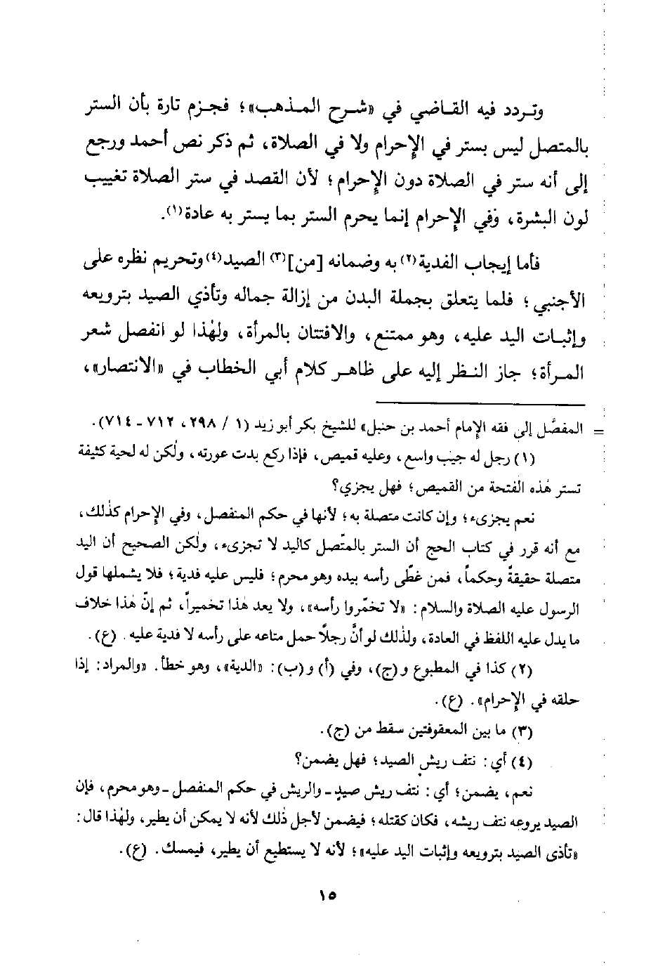فأما إيجاب الفدية (¬2) به وضمانه [من] (¬3) الصيد (¬4) وتحريم نظره على الأجنبي؛ فلما يتعلق بجملة البدن من إزالة جماله وتأذي الصيد بترويعه وإثبات اليد عليه، وهو ممتنع، والافتتان بالمرأة، ولهذا لو انفصل شعر المرأة؛ جاز النظر إليه على ظاهر كلام أبي الخطاب في "الانتصار"،