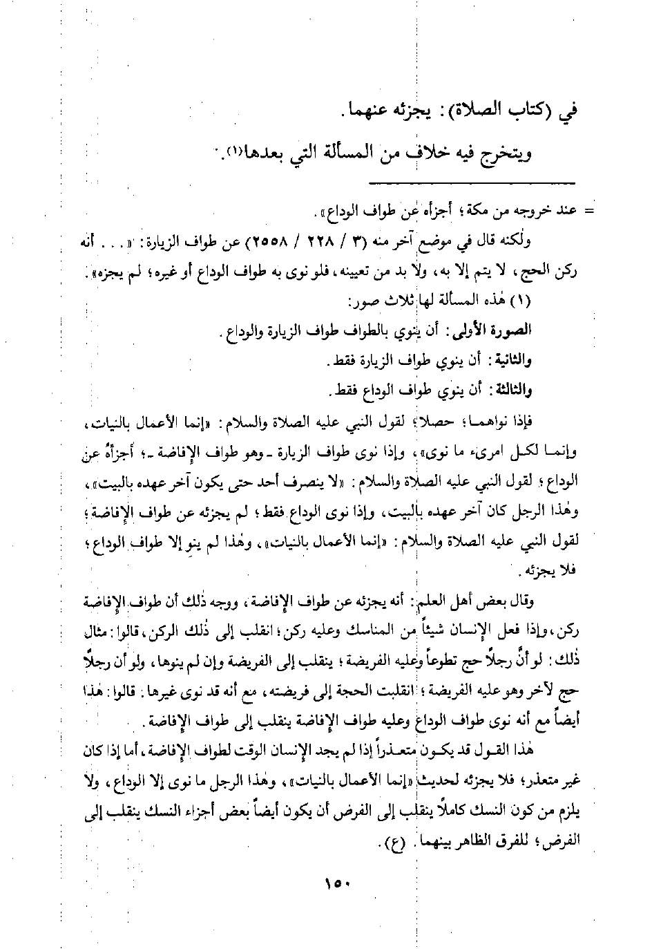 هذا القول قد يكون متعذرًا إذا لم يجد الإنسان الوقت لطواف الإفاضة، أما إذا كان غير متعذر؛ فلا يجزئه لحديث "إنما الأعمال بالنيات"، وهذا الرجل ما نوى إلا الوداع، ولا يلزم من كون النسك كاملًا ينقلب إلى الفرض أن يكون أيضًا بعض أجزاء النسك ينقلب إلى الفرض؛ للفرق الظاهر بينهما. (ع).