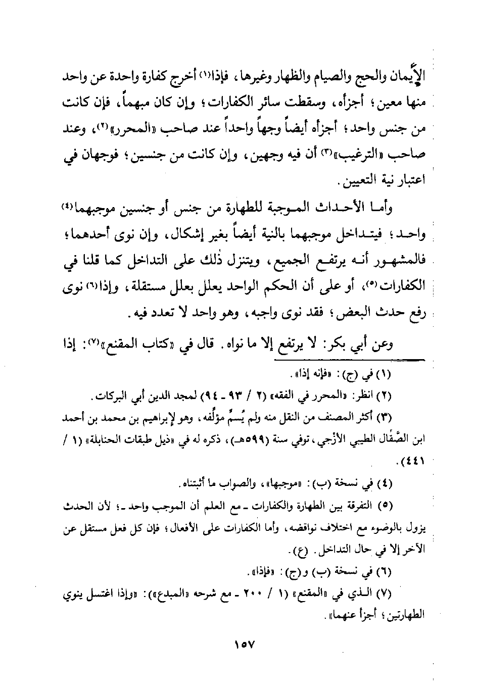 (¬5) التفرقة بين الطهارة والكفارات -مع العلم أن الموجب واحد-؛ لأن الحدث يزول بالوضوء مع اختلاف نواقضه، وأما الكفارات على الأفعال؛ فإن كل فعل مستقل عن الآخر إلا في حال التداخل. (ع).
