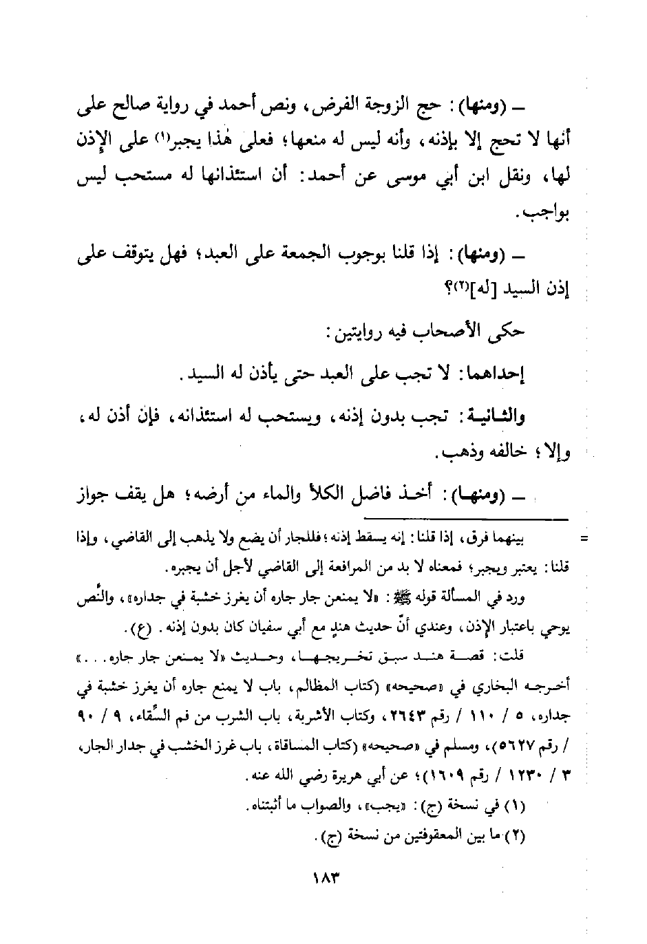 ورد في المسألة قوله -صلى اللَّه عليه وسلم-: "لا يمنعن جار جاره أن يغرز خشبة في جداره"، والنَّص يوحي باعتبار الإذن، وعندي أن حديث هندٍ مع أبي سفيان كان بدون إذنه. (ع).