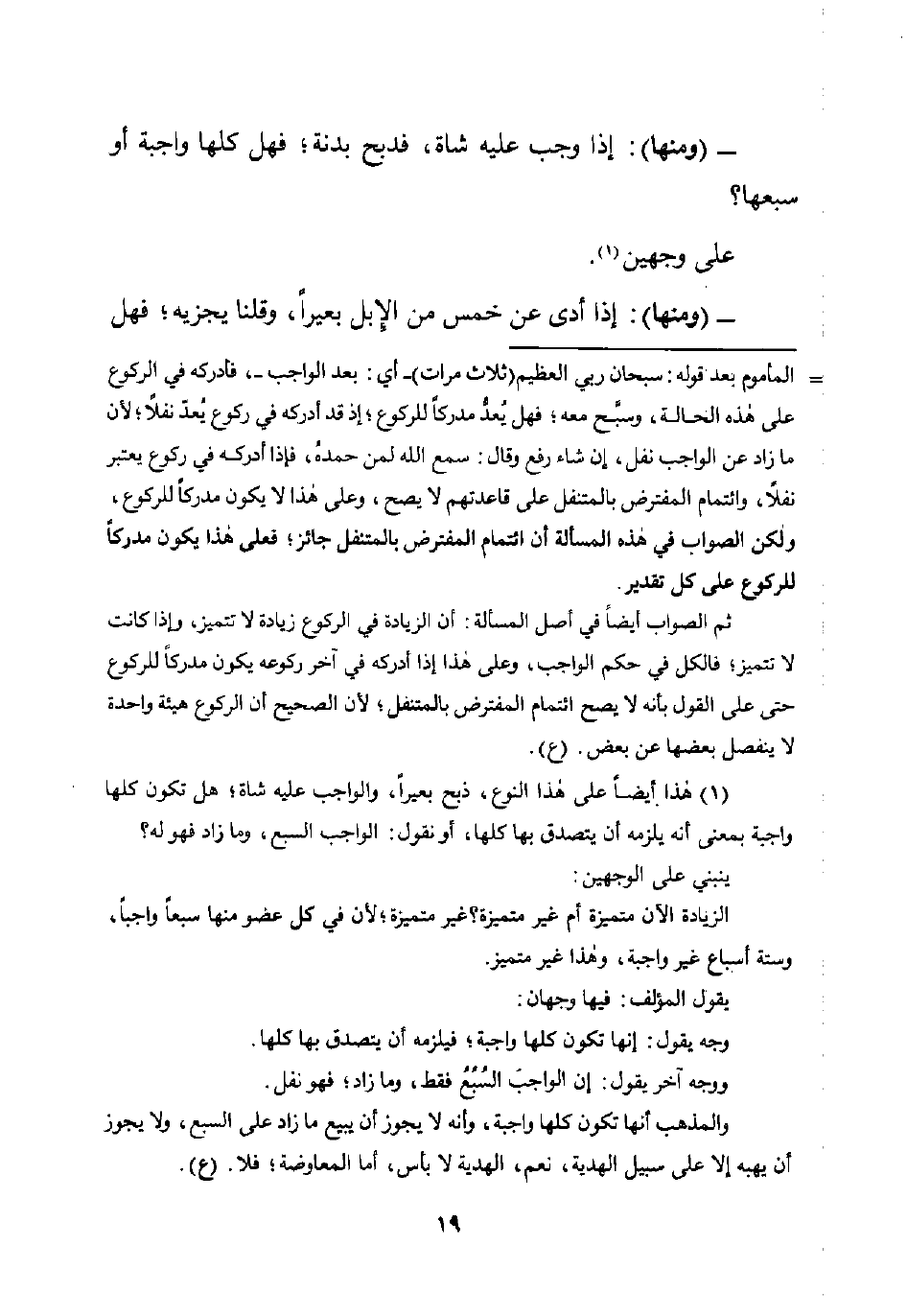 (¬1) هذا أيضًا على هذا النوع، ذبح بعيرًا، والواجب عليه شاة؛ هل تكون كلها واجة بمعنى أنَّه يلزمه أن يتصدق بها كلها، أو نقول: الواجب السبع، وما زاد فهو له؟
