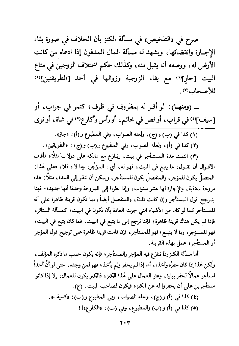 أما مسألة الكنز إذا تنازع فيه المؤجر والمستأجر؛ فإنه يكون حسب ما ذكره المؤلف، ولكن هذا إذا كان حفُره وأخذه، أما إذا لم يحفر ولم يأخذ؛ فهو لمن وجده، حتى لو أن أحدًا استأجر عمالًا لحفر بيارة، وعثر العمال على هذا الكنز؛ فالكنز يكون للعمال، إلا إذا كانوا مستأجرين على أن يحفروا له عن الكنز؛ فيكون لصاحب البيت. (ع).