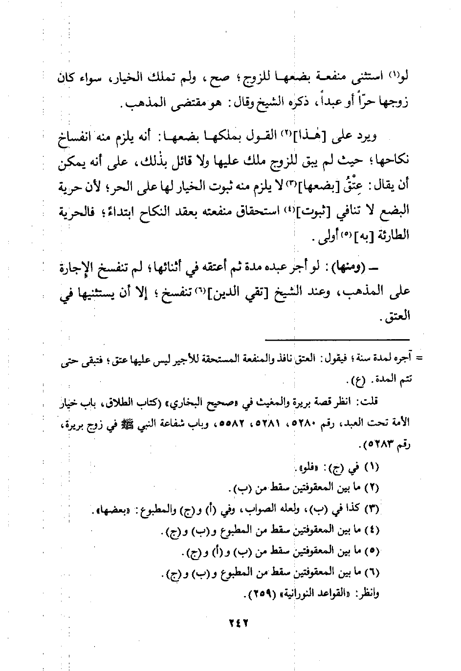قلت: انظر قصة بربرة والمغيث في "صحيح البخاري" (كتاب الطلاق، باب خيار الأمة تحت العبد، رقم 5280، 5281، 5582، وباب شفاعة النبي -صلى اللَّه عليه وسلم- في زوج بريرة، رقم 5283).
