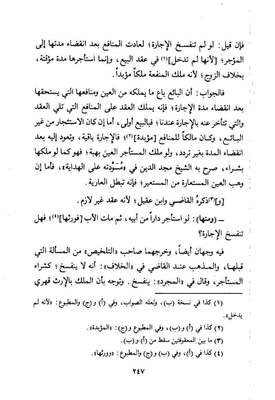 - (ومنها): لو استأجر دارًا من أبيه، ثم مات الأب [فورثها] (¬4)؛ فهل تنفسخ الإِجارة؟