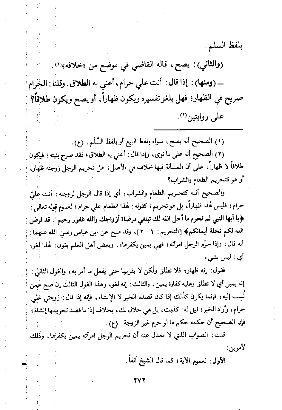 قلت: الصواب الذي لا معدل عنه أن تحريم الرجل امرأته يمين يكفرها، وذلك لأمرين: