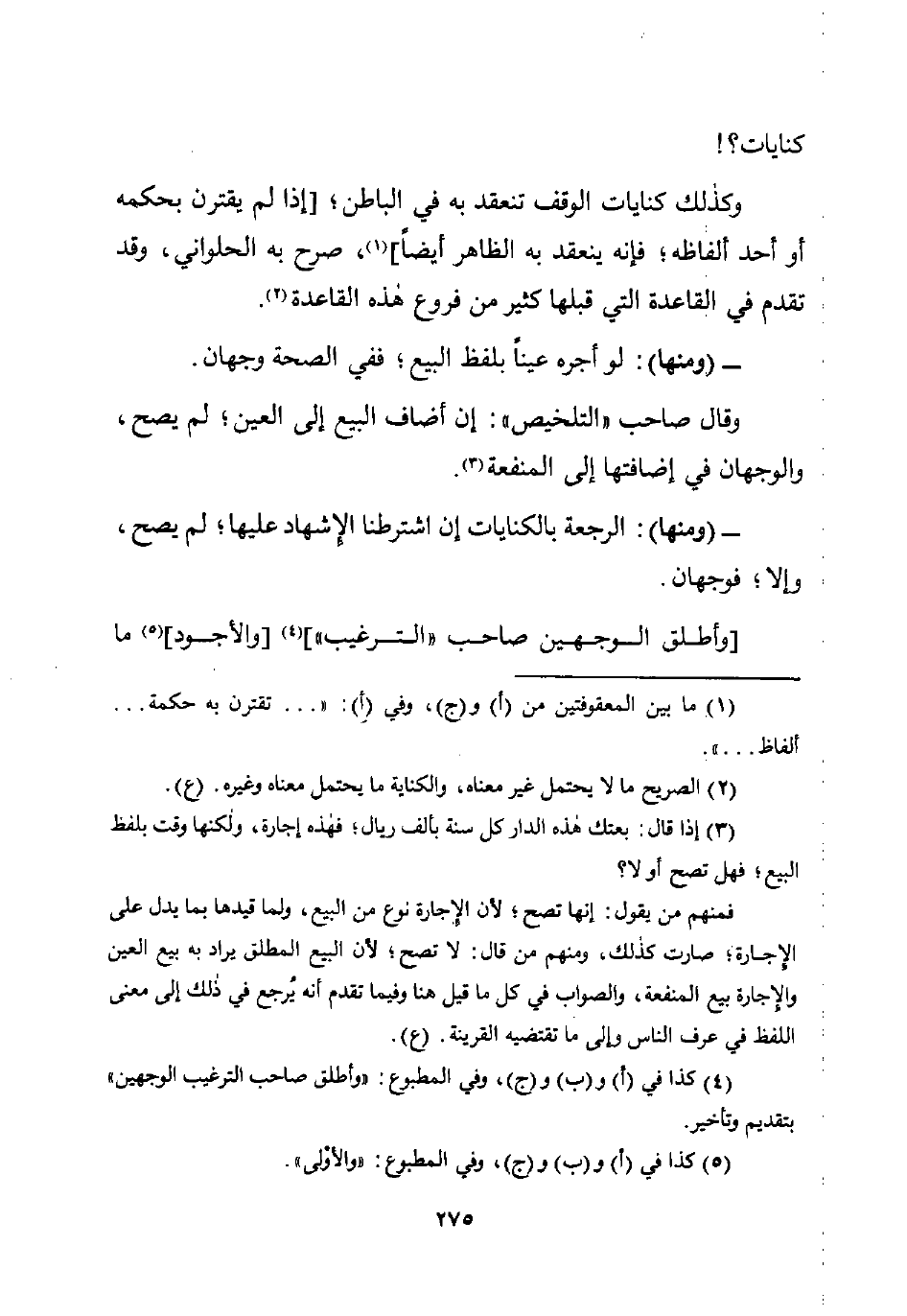 - (ومنها)؛ الرجعة بالكنايات ان اشترطنا الإشهاد عليها؛ لم يصح، وإلا؛ فوجهان.