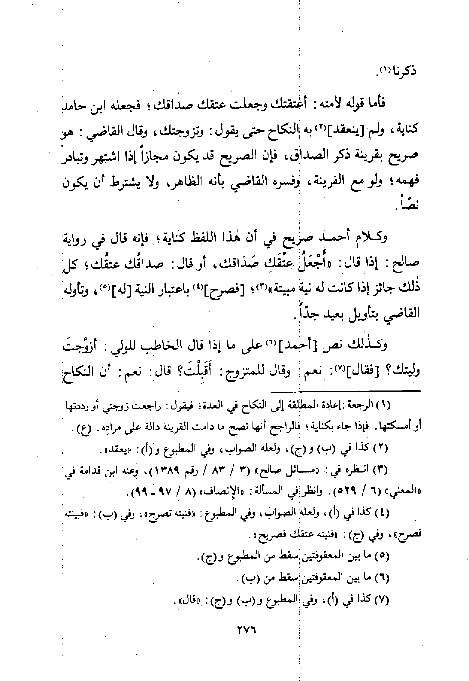 وكلام أحمد صريح في أن هذا اللفظ كناية؛ فإنه قال في رواية صالح: إذا قال: "أَجْعَلُ عتْقَكِ صَدَاقك، أو قال: صداقُك عتقُك؛ كل ذلك جائز إذا كانت له نية مبيتة" (¬3)؛ [فصرح] (¬4) باعتبار النية [له] (¬5)، وتأوله القاضي بتأويل بعيد جدًّا.