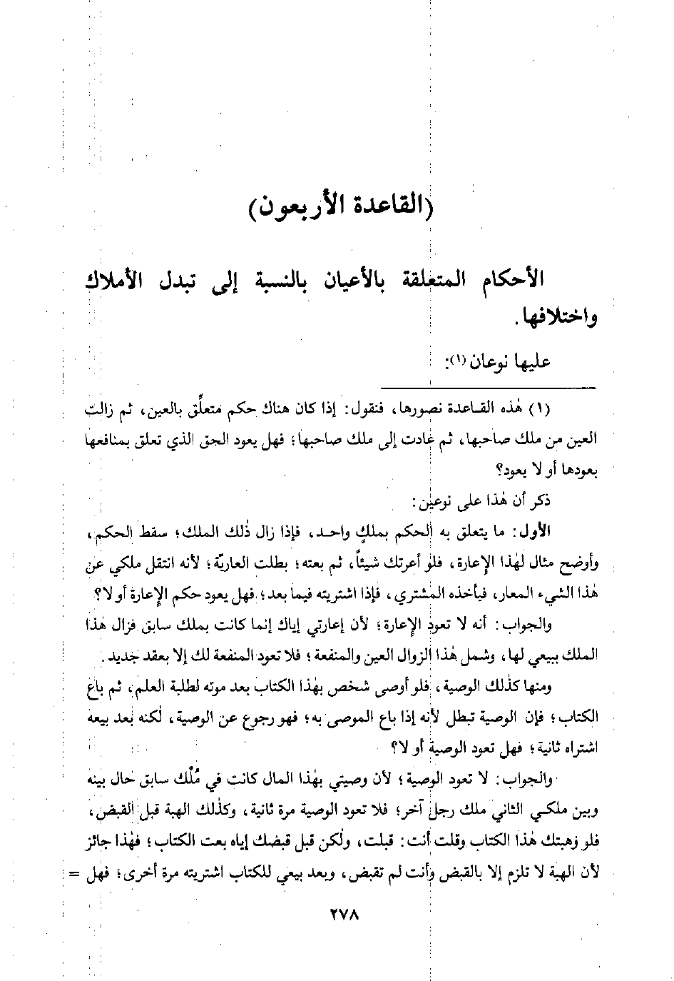 (¬1) هذه القاعدة نصورها، فنقول؛ إذا كان هناك حكم متعلِّق بالعين، ثم زالت الحين من ملك صاحبها، ثم عادت إلى ملك صاحبها؛ فهل يعود الحق الذي تعلق بمنافعها بعودها أو لا يعود؟