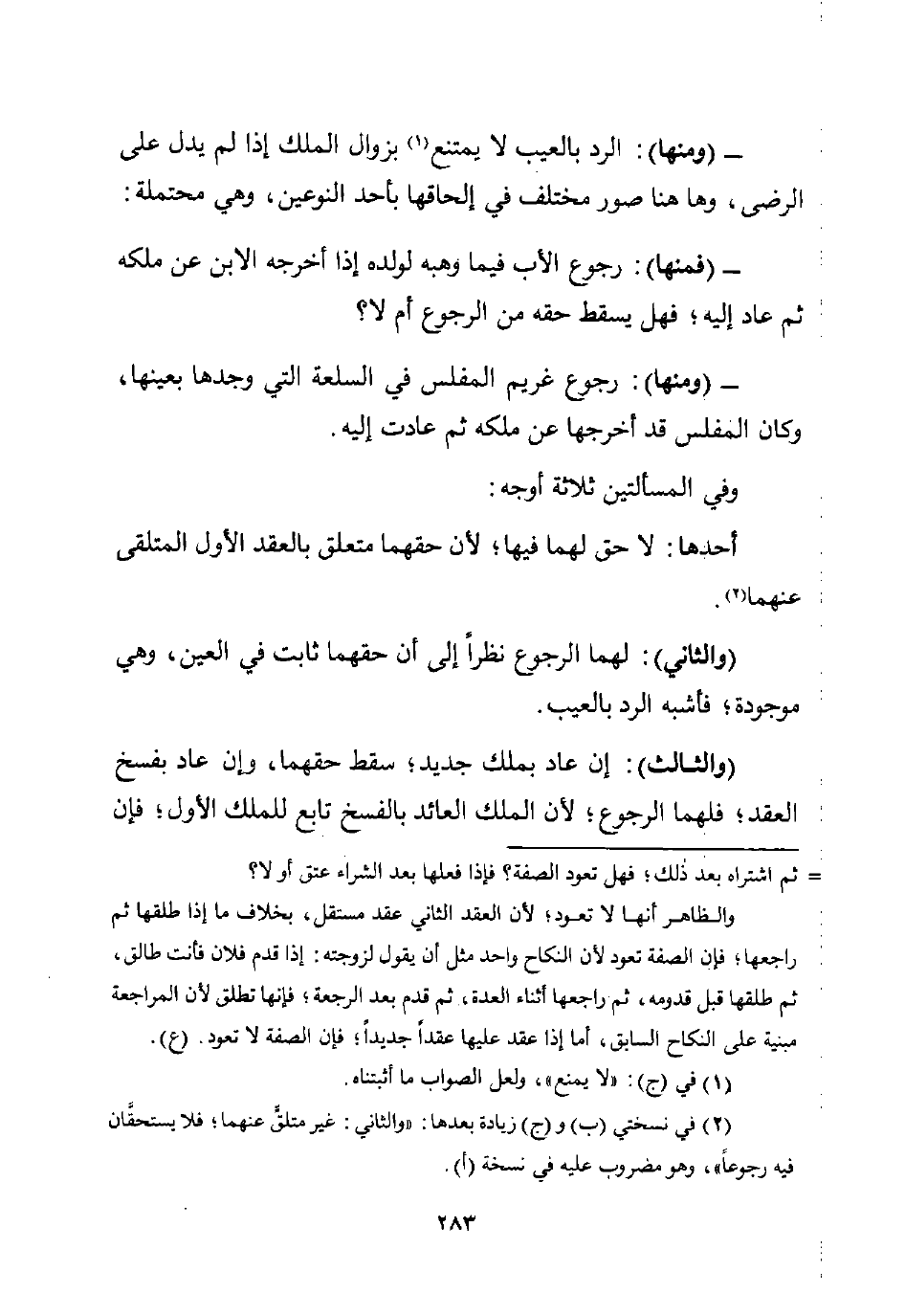 - (ومنها): الرد بالعيب لا يمتنع (¬1) بزوال الملك إذا لم يدل على الرضى، وها هنا صور مختلف في إلحاقها بأحد النوعين، وهي محتملة: