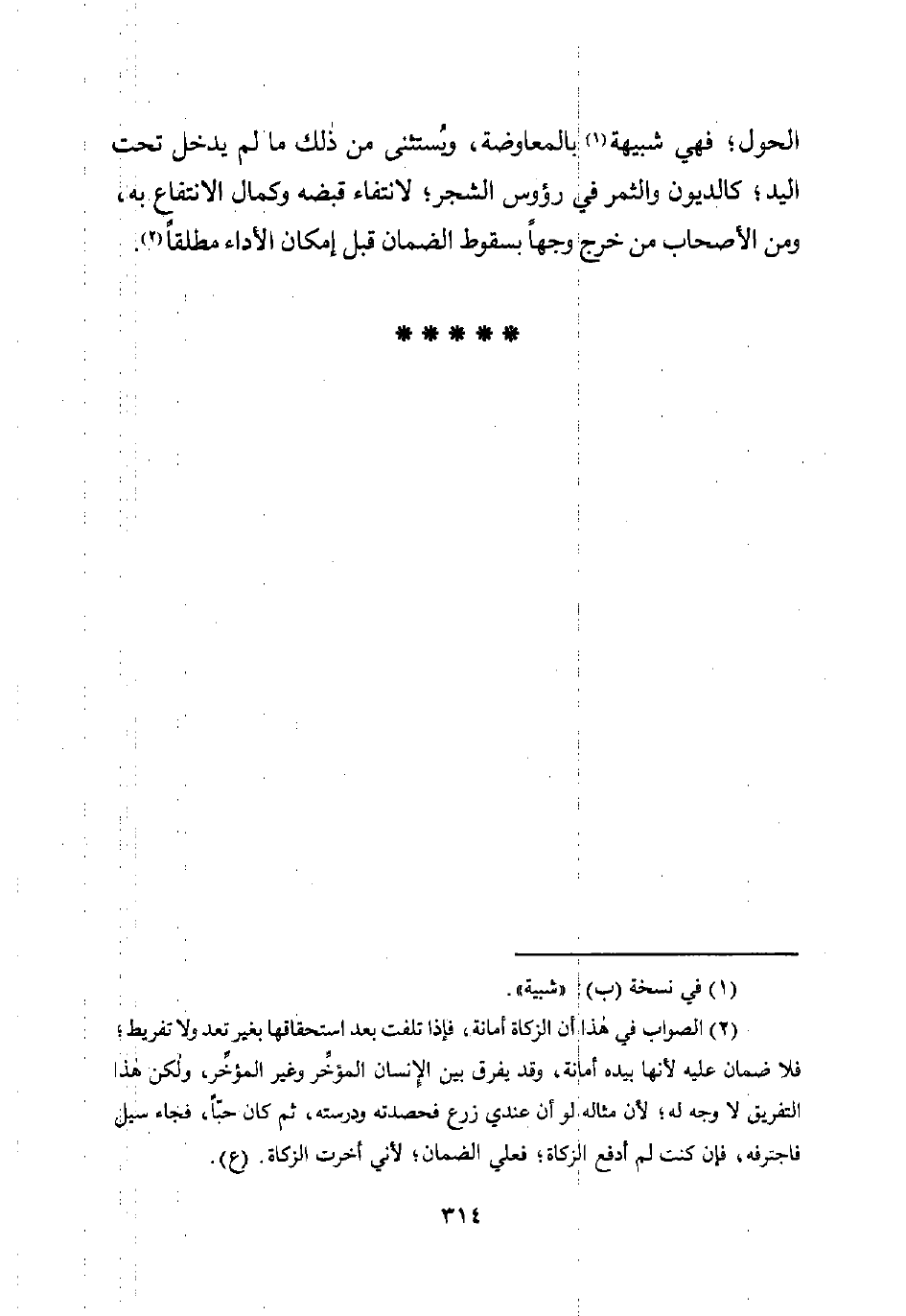 (¬2) الصواب في هذا أن الزكاة أمانة، فإذا تلفت بعد استحقاقها بغير تعد ولا تفريط؛ فلا ضمان عليه لأنها بيده أمانة، وقد يفرق بين الإِنسان المؤخِّر وغير المؤخِّر، ولكن هذا التفريق لا وجه له؛ لأن مثاله لو أن عندي زرع فحصدته ودرسته، ثم كان حبًّا، فجاء سيل فاجترفه، فإن كنت لم أدفع الزكاة؛ فعلي الضمان؛ لأني أخرت الزكاة. (ع).
