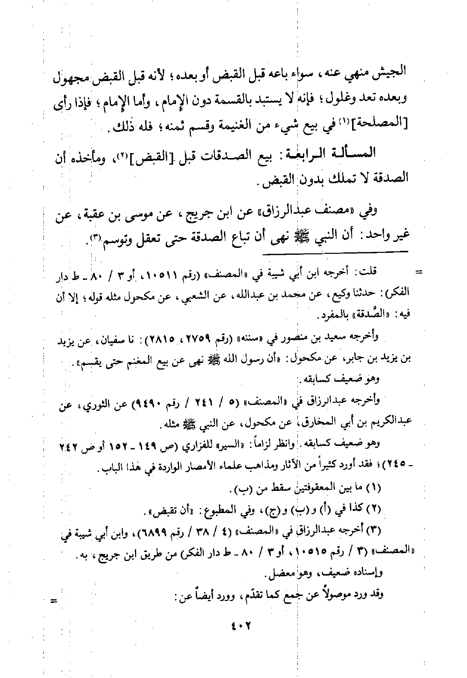المسألة الرابعة: بيع الصدقات قبل [القبض] (¬2)، ومأخذه أن الصدقة لا تملك بدون القبض.