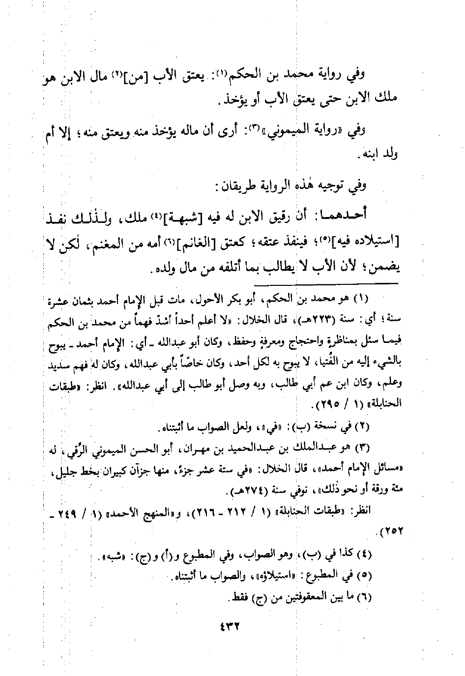(¬1) هو محمد بن الحكم، أبو بكر الأحول، مات قبل الإمام أحمد بثمان عشرة سنة؛ أي: سنة (223 هـ)، قال الخلال: "لا أعلم أحدًا أشدّ فهمًا من محمد بن الحكم فيما سئل بمناظرةٍ واحتجاج ومعرفةٍ وحفظ، وكان أبو عبد اللَّه -أي: الإمام أحمد- يبوح بالشيء إليه من الفُتيا، لا يبوح به لكل أحد، وكان خاصًّا بأبي عبد اللَّه، وكان له فهم سديد وعلم، وكان ابن عم أبي طالب، وبه وصل أبو طالب إلى أبي عبد اللَّه". انظر: "طبقات الحنابلة" (1/ 295).