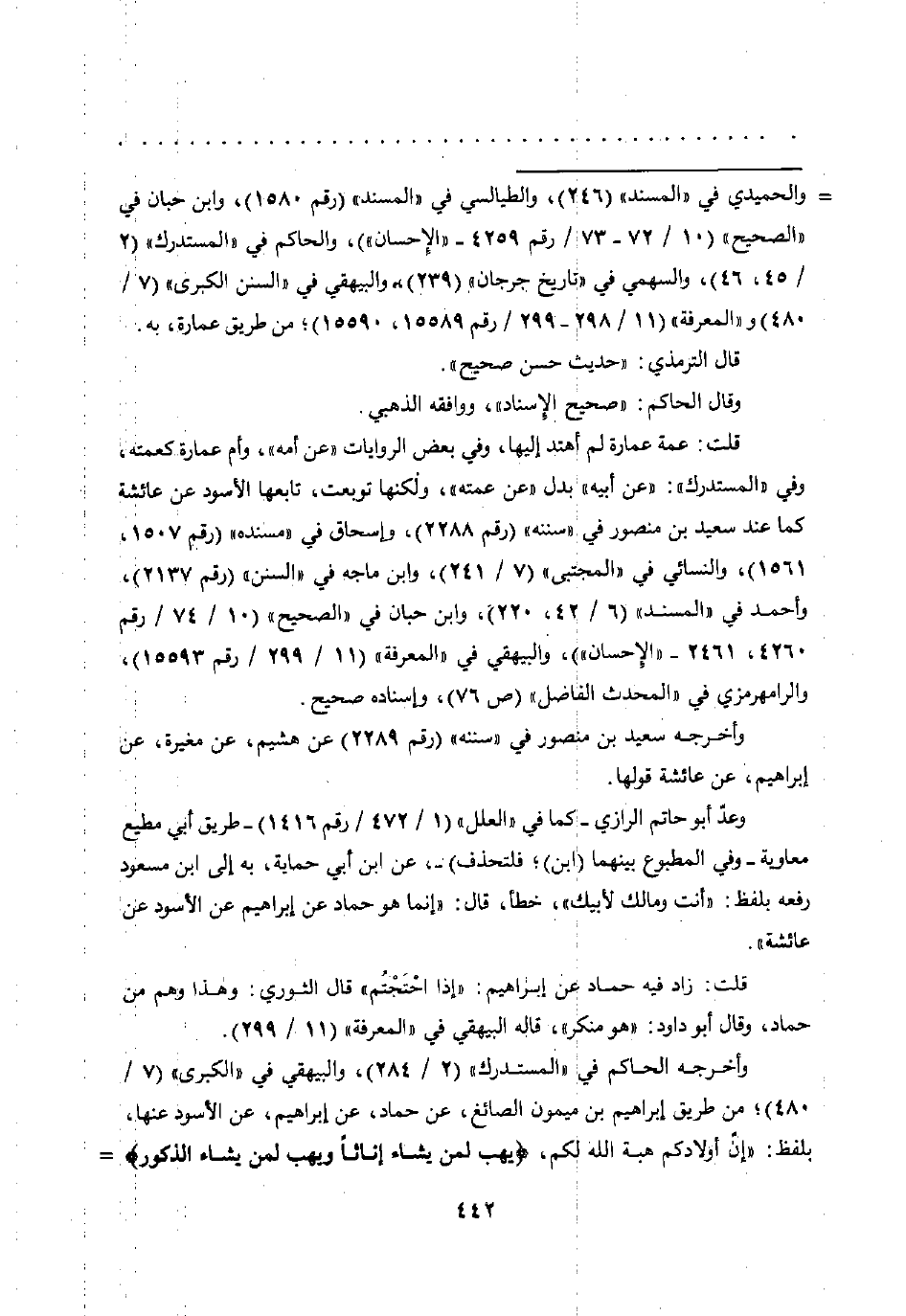 وأخرجه الحاكم في "المستدرك" (2/ 284)، والبيهقي في "الكبرى" (7/ 480)؛ من طريق إبراهم بن ميمون الصائغ، عن حماد، عن إبراهيم، عن الأسود عنها، بلفظ: "إنّ أولادكم هبة اللَّه لكم، {يَهَبُ لِمَنْ يَشَاءُ إِنَاثًا وَيَهَبُ لِمَنْ يَشَاءُ الذُّكُورَ} =