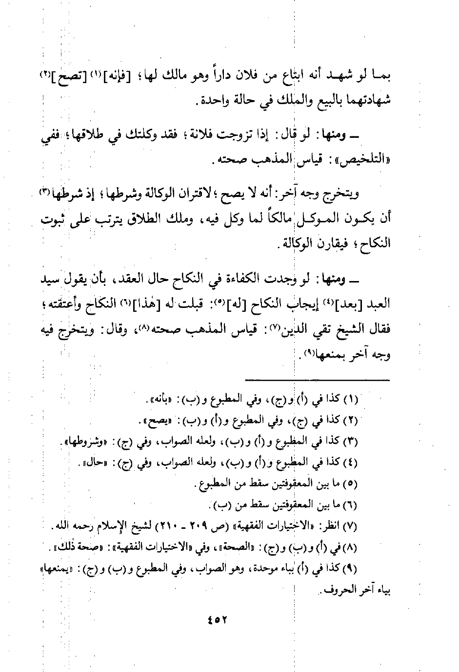 (¬8) في (أ) و (ب) و (ج): "الصحة"، وفي "الاختيارات الفقهية": "صحة ذلك".