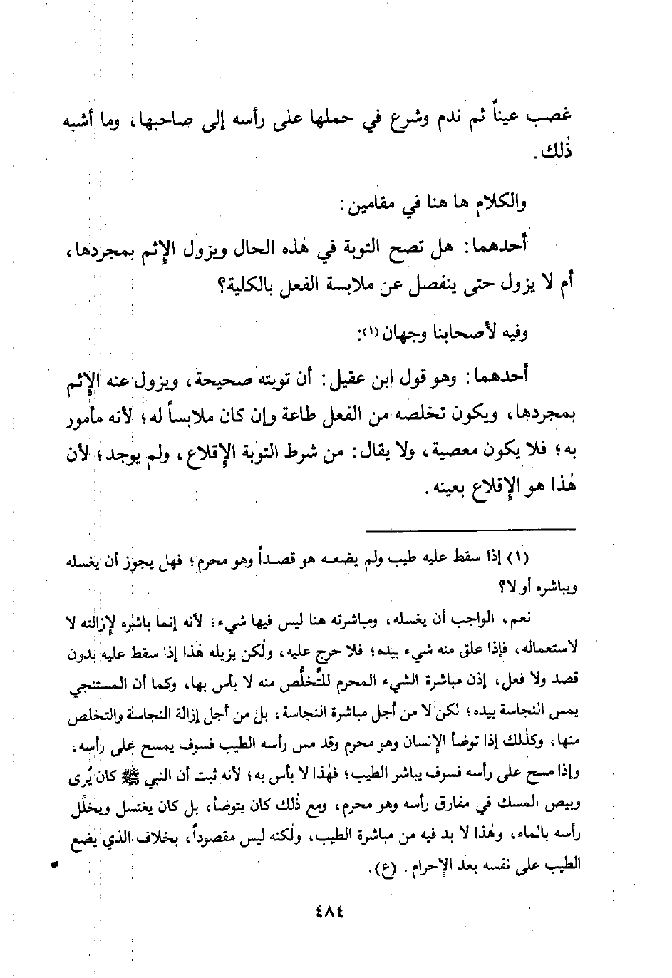 (¬1) إذا سقط عليه طب ولم يضعه هو قصدًا وهو محرم، فهل يجوز أن يغسله ويباشره أو لا؟