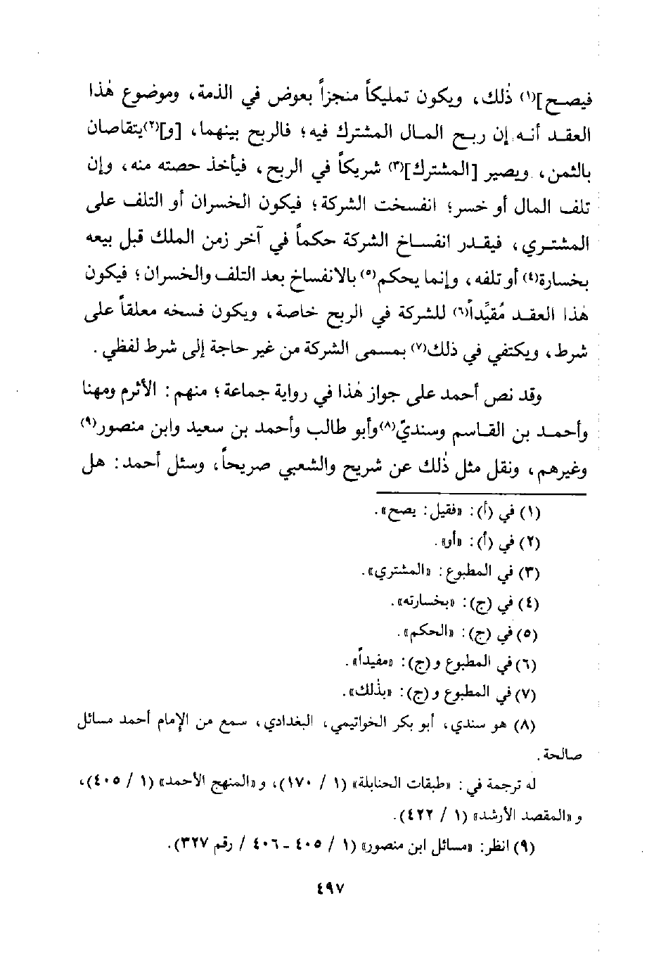 (¬9) انظر: "مسائل ابن منصور" (1/ 405 - 406/ رقم 327).