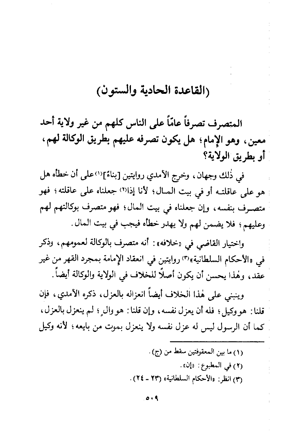 (¬3) انظر: "الأحكام السلطانية" (23 - 24).