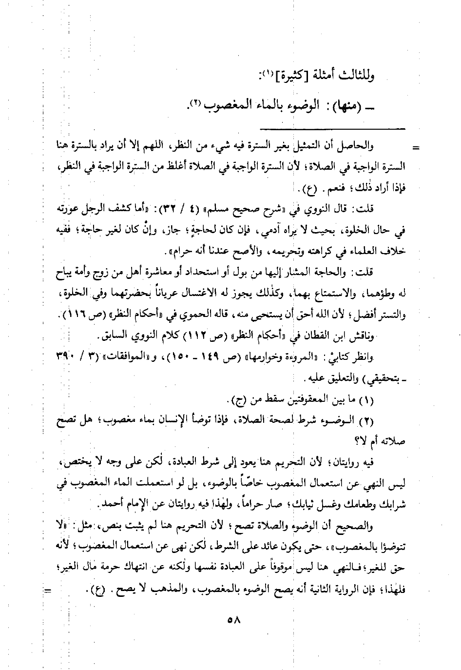 - (منها): الوضوء بالماء المغصوب (¬2).
