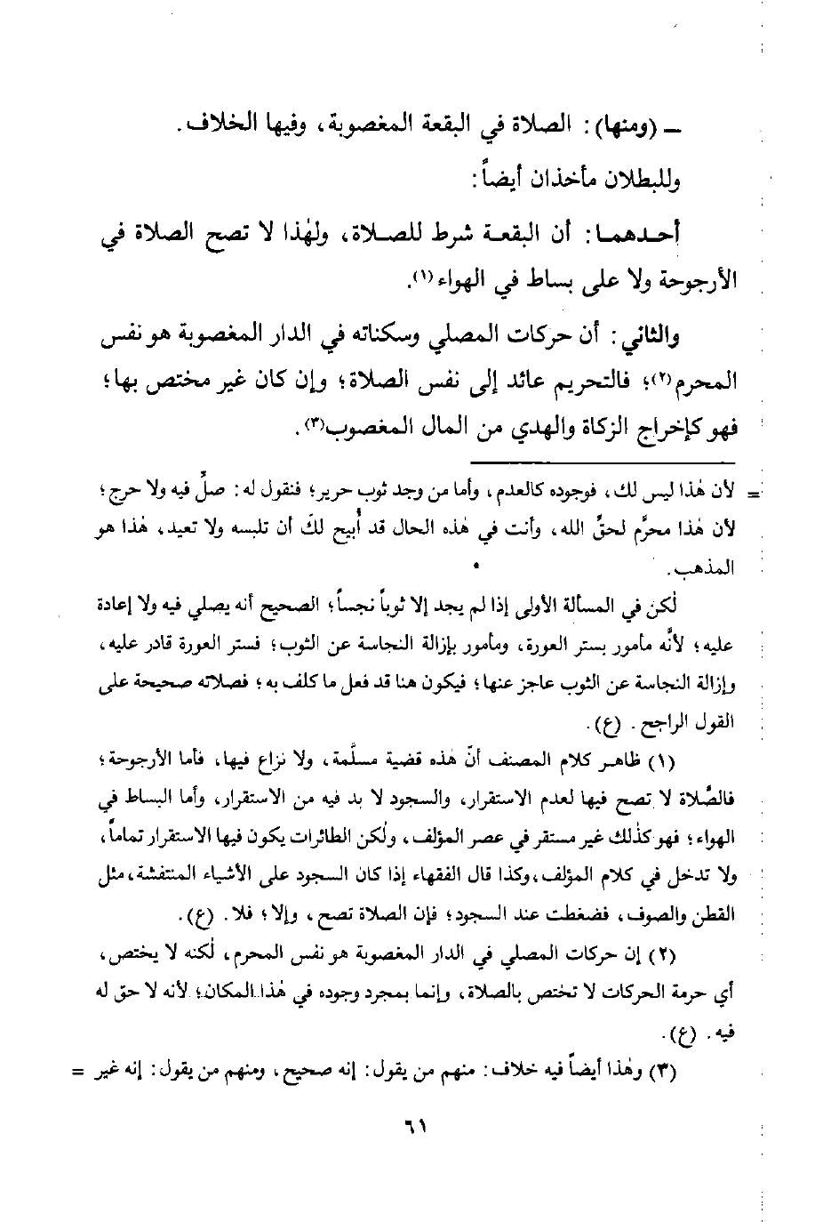 (¬2) إن حركات المصلي في الدار المغصوبة هو نفس المحرم، لكنه لا يختص، أي حرمة الحركات لا تختص بالصلاة، وإنما بمجرد وجوده في هذا المكان؛ لأنه لا حق له فيه. (ع).