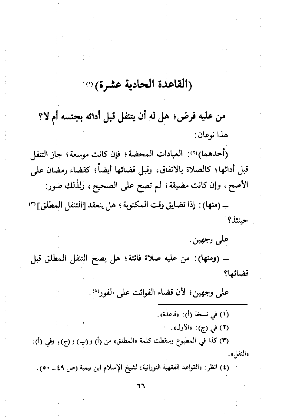 (¬4) انظر: "القواعد الفقهية النورانية" لشيخ الإسلام ابن تيمية (ص 49 - 50).