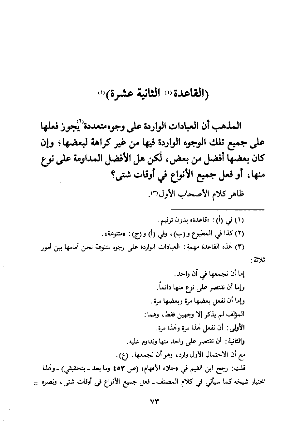 (¬3) هذه القاعدة مهمة: العبادات الواردة على وجوه متنوعة نحن أمامها بين أمور ثلاثة: