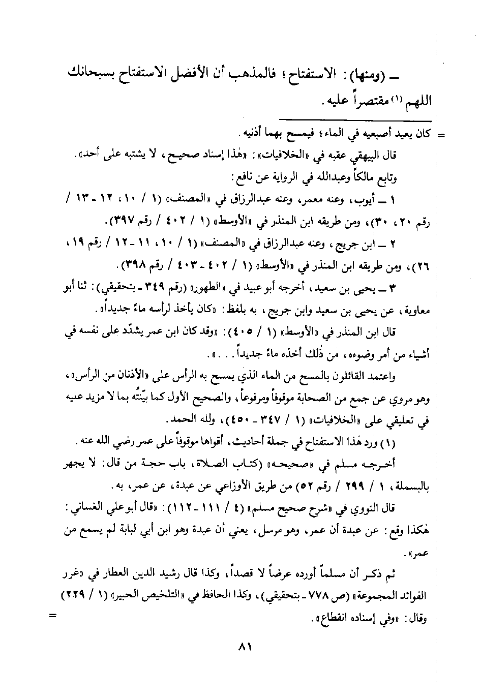 (¬1) ورد هذا الاستفتاح فى جملة أحاديث، أقواها موقوفًا على عمر رضي اللَّه عنه.