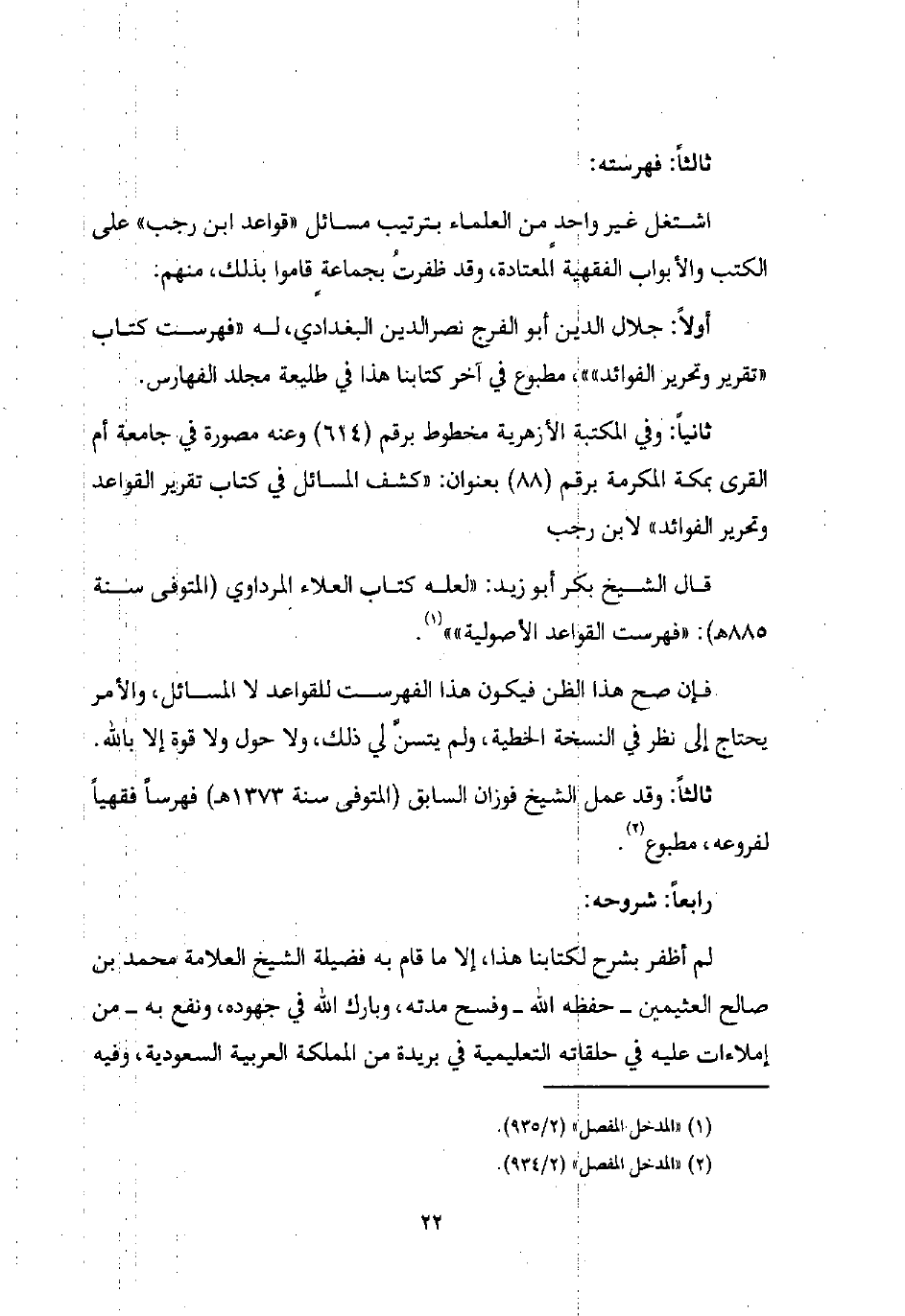 فإن صح هذا الظن فيكون هذا الفهرست للقواعد لا المسائل، والأمر يحتاج إلى نظر في النسخة الخطية، ولم يتسنَّ لي ذلك، ولا حول ولا قوة إلا باللَّه.