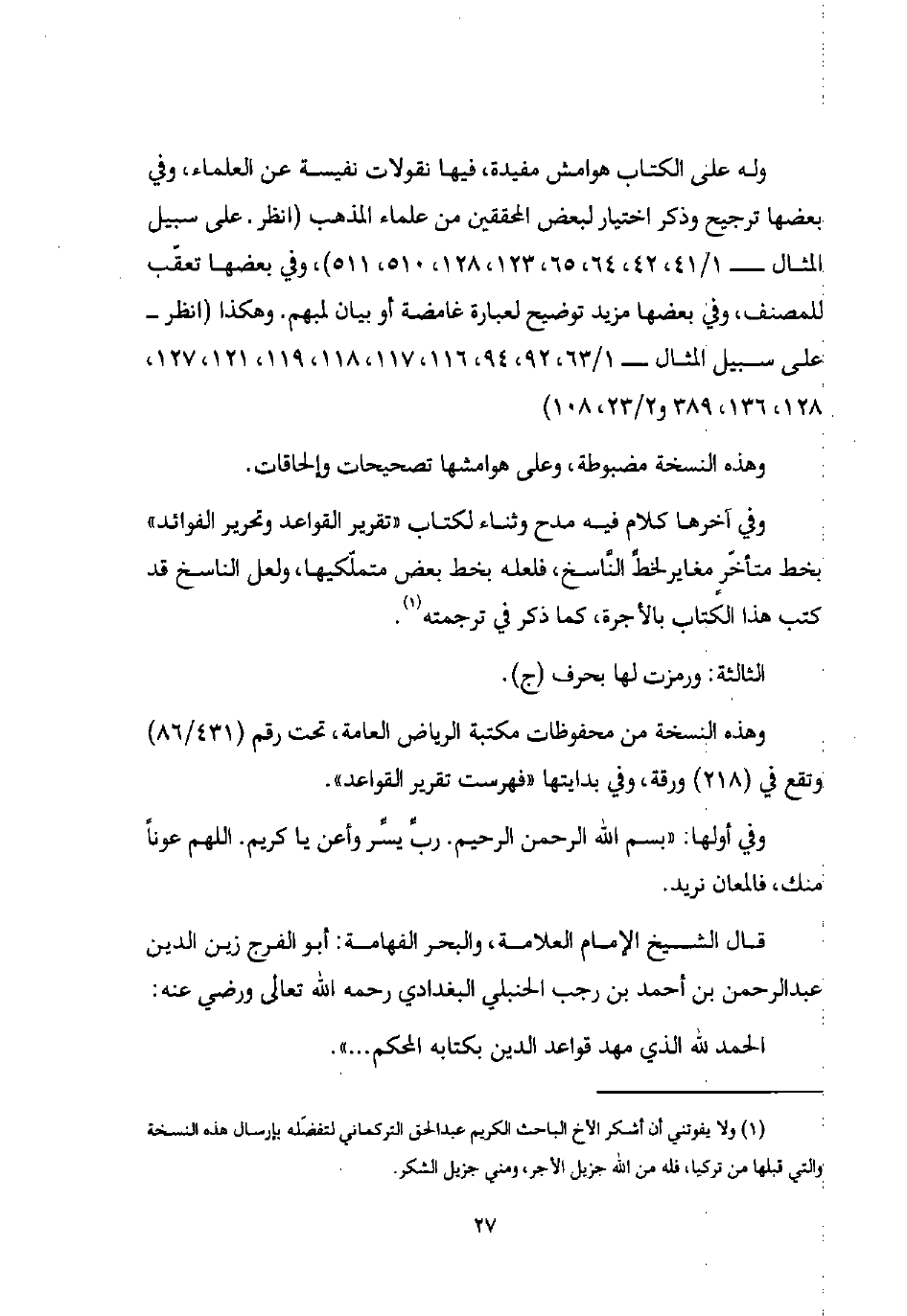 (¬1) ولا يفوتني أن أشكر الأخ الباحث الكريم عبد الحق التركماني لتفضّله بإرسال هذه النسخة والتي قبلها من تركيا، فله من اللَّه جزيل الأجر، ومني جزيل الشكر.