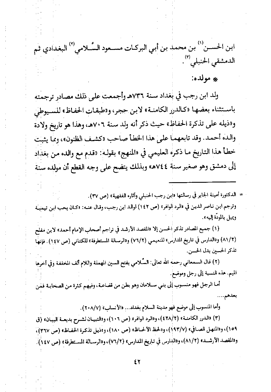 = الدكتورة أمينة الجابر في رسالتها "ابن رجب الحنبلي وآثاره الفقهية" (ص 37).
