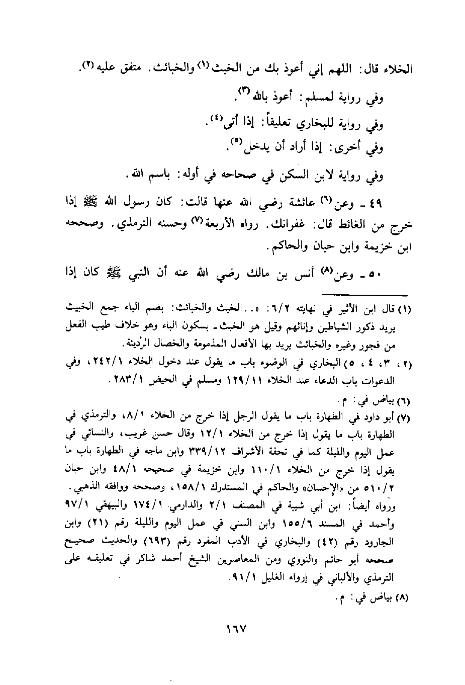 ابْن عمر قَالَ يَقُول نَاس إِذا قعدت للْحَاجة فَلَا تقعد مُسْتَقْبل الْقبْلَة وَلَا بَيت الْمُقَدّس وَلَقَد رقيت عَلَى ظهر بَيت لنا فَرَأَيْت رَسُول الله صَلَّى اللَّهُ عَلَيْهِ وَسَلَّم َ قَاعِدا عَلَى لبنتين مُسْتَقْبلا بَيت الْمُقَدّس لِحَاجَتِهِ مُتَّفق عَلَيْهِ