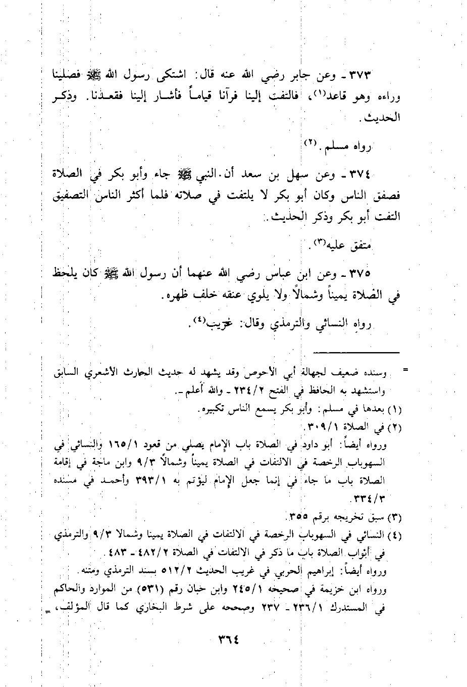 365 - وَعَن أبي هُرَيْرَة رَضِيَ اللَّهُ عَنْه أَن رَسُول الله صَلَّى اللَّهُ عَلَيْهِ وَسَلَّم َ قَالَ إِذا صَلَّى أحدكُم فليجعل من تِلْقَاء وَجهه شَيْئا فَإِن لم يجد فلينصب عَصا فَإِن لم يكن مَعَه عَصا فليخط خطا ثمَّ لَا يضرّهُ مَا مر أَمَامه رَوَاهُ أَبُو دَاوُد وَابْن مَاجَه